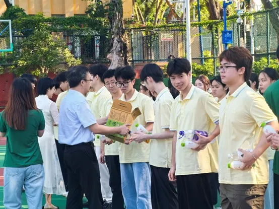炎炎烈日,训期正酣。为给刻苦训练的医学连队的教官和新生驱散暑热、缓解疲惫,口腔医学院精心筹备,由学院领导带领辅导员以及助教们给全体医学连队教官与学生分发椰子水和润喉糖,将这份关怀与清凉亲手送到每一个人手中。