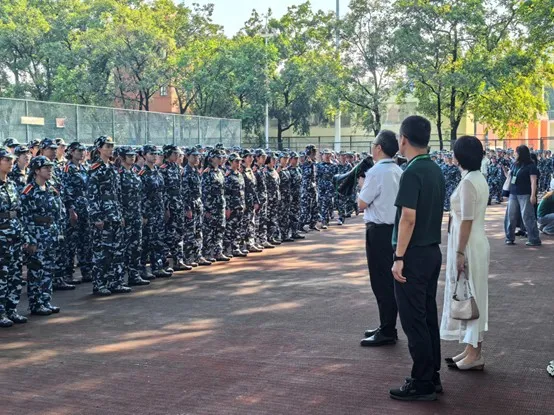 黄跃和昌伟向全体教官、带训教导员表示了真挚的感谢,并高度肯定了新生们在训练中的卓越表现,赞扬了他们展现出的脚踏实地,艰苦奋斗的精神风貌。他们寄语新生,要珍惜这段宝贵的人生经历,将训练中练就的刻苦品质和团队精神内化为自身品质,在未来的大学生活中继续积极进取,勇攀高峰。同时,两位老师也关心同学们要时刻注意身体状态,做好防暑降温措施,以最佳的状态迎接并圆满完成各项训练任务。